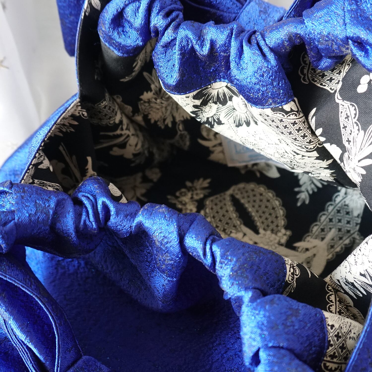 ラメが織り込まれたふくれジャガードのリボンバッグを仕立てました。