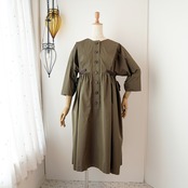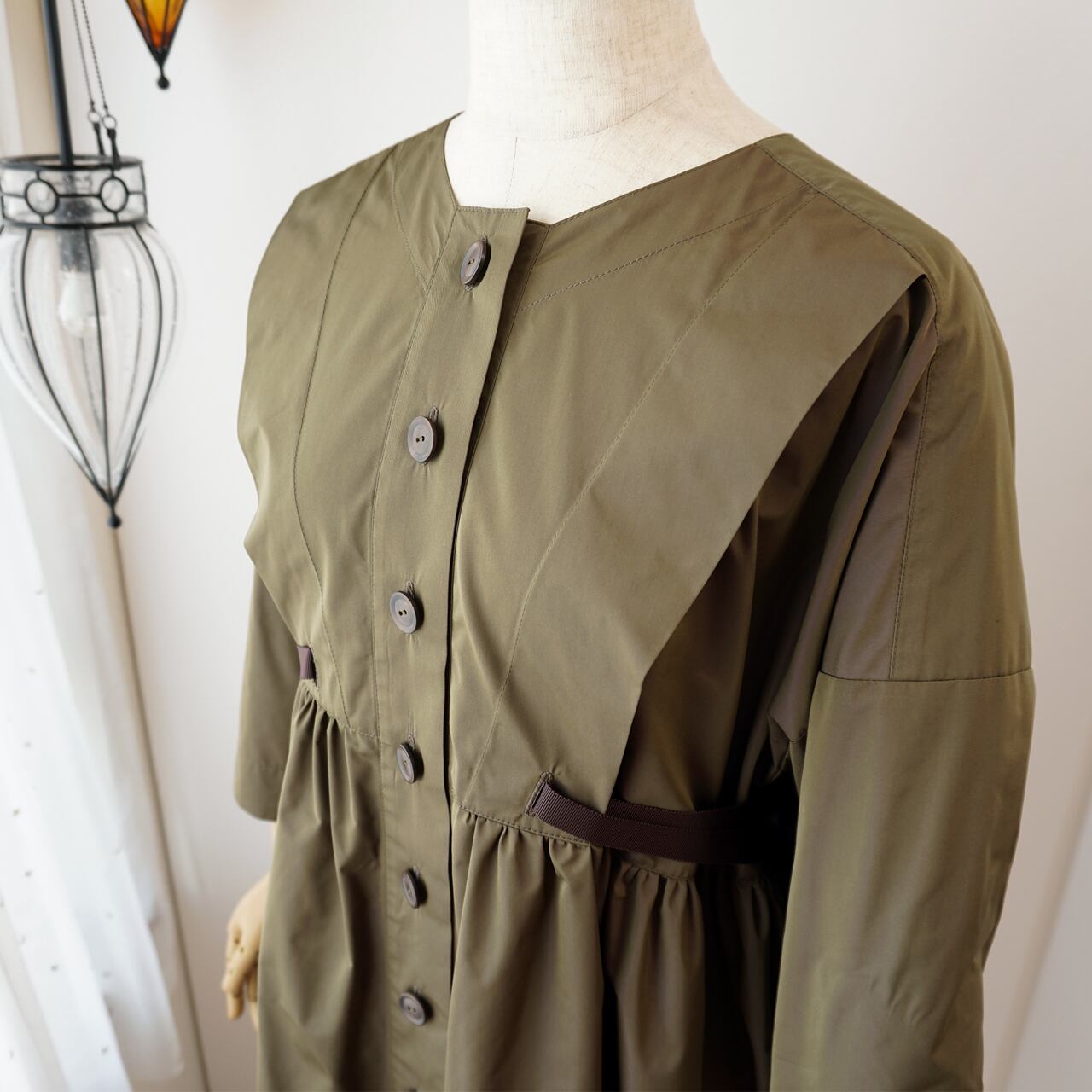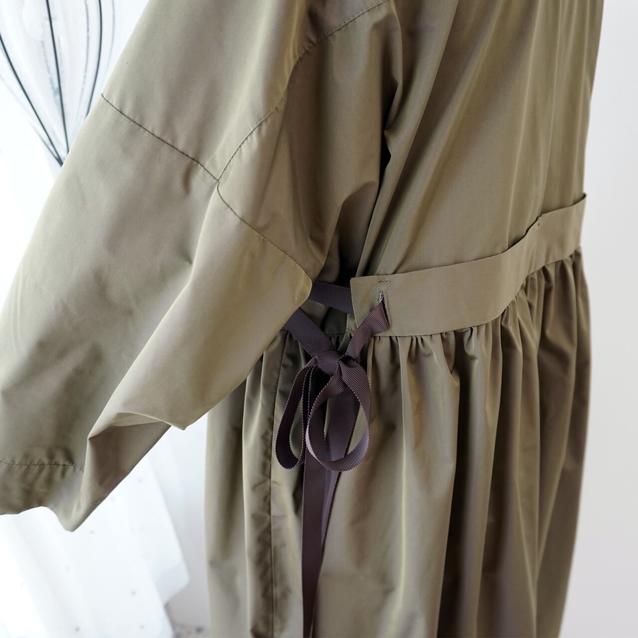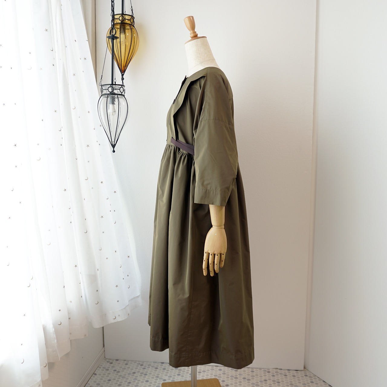 カーキ色とパープル色のシャンブレータフタ(パウダリーなシャカシャカ感です)で、ハイウェストのワンピースを仕立てました。